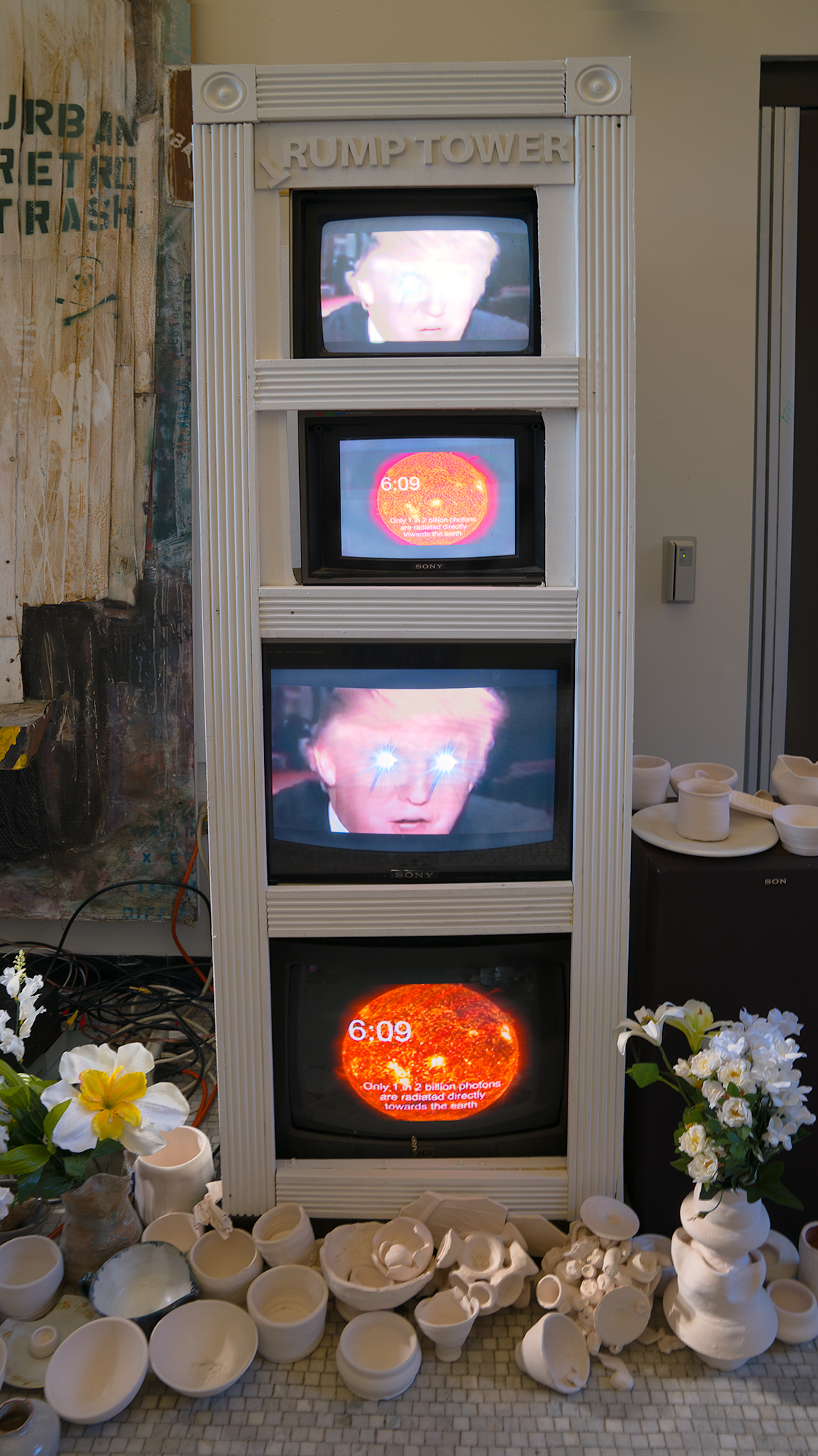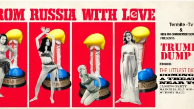 The focus of the investigation? An art installation critical of President Donald Trump, called “Waste Show,” which featured tweets, speeches, and recordings from Trump, a Bob Dylan song, audio and video from Nazi propaganda film “The Triumph of the Will,” miniature phallic figures intended to look like Donald Trump, and more. The show was produced by video collective Termite TV, created by Powell and a group of Arcadia alumni and students, and displayed February 14 – March 23 in Arcadia’s Murphy Hall, where Powell’s office resides.
