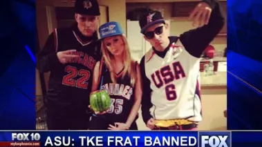 By now, it seems that virtually everyone in America has heard about the theme party held on Martin Luther King Day by members of the Tau Kappa Epsilon (TKE) fraternity at Arizona State University. The situation almost seems as though it was scientifically engineered to garner outrage and go viral. Students dressed in sports attire made what are being called “gang signs” with their hands, and, in what was probably the apex of bad taste, one female partygoer was pictured drinking out of a cup hollowed out from a watermelon. Also typical of college students these days is the fact that photos were posted on Instagram. Of the three photos that have been made public, the one at the top of this page conveniently sums up all of the reported objectionable features of the party.