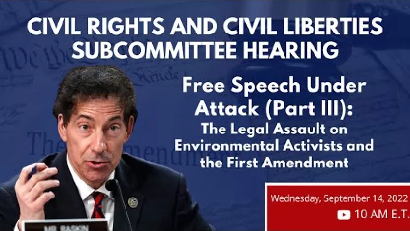 YouTube: Congressman Raskin and Congressional Oversight Committee on SLAPP suits
