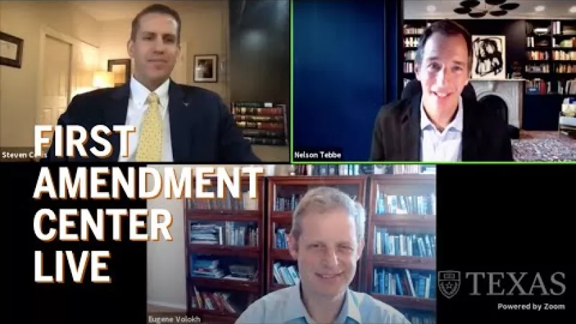 Professors Nelson Tebbe (Cornell Law) and Eugene Volokh (UCLA Law) participated in a conversation regarding how and whether current applications of free speech doctrines affect disparities in income, wealth, and other goods; whether those applications should be altered; and the disagreements and controversies arising from some of the proposed changes.