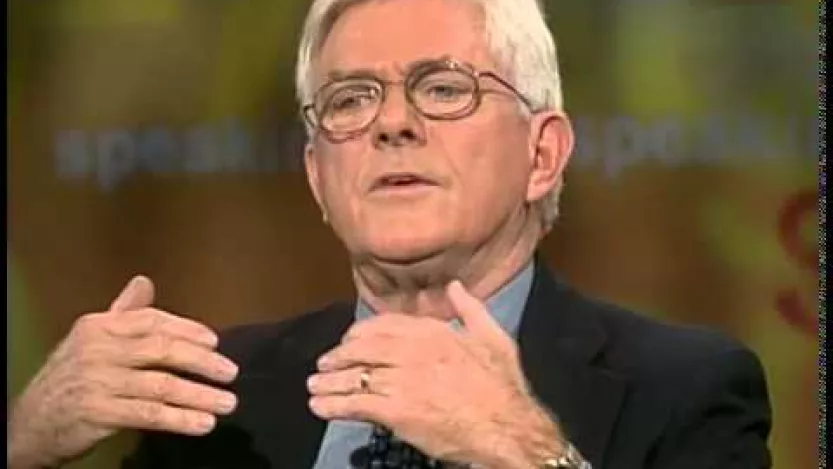 Ken Paulson: “Speaking Freely,” a show seen in more than 60 cities on PBS affiliates across the country (2000-2004), was a perfect forum for Phil Donahue. The show — a project of the First Amendment Center — had an unusual format featuring actors, artists, musicians, and authors discussing how they use their free speech. Who better to talk with than the man who brought the marketplace of ideas to daytime TV?