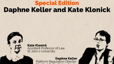 Here to discuss the issue are two of the biggest experts on the subject of internet law and platform regulation: Daphne Keller, Platform Regulation Director at the Stanford Cyber Policy Center (formerly an Associate General Counsel at Google); and Kate Klonick, assistant professor at St. John’s University teaching internet law and information privacy, and a fellow at Yale Law School’s Information Society Project.