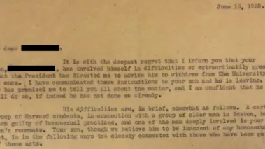 In the end, eight students and one instructor were removed from the school and forced to leave the city of Cambridge—such was the power of Harvard. Two of the eight expelled were punished, not for being homosexuals or engaging in homosexual activity, but for the crime of merely associating too closely with people they allegedly knew to be gay. As a letter to a parent of an expelled student said: “Your son, though we believe him to be innocent of any homosexual act, is in the following ways too closely connected with those who have been guilty of these acts...”