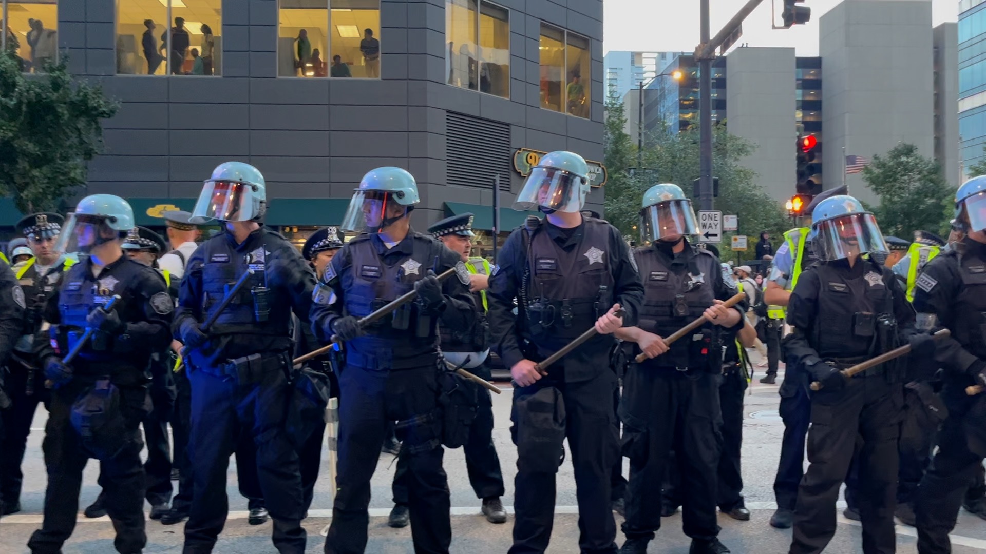 Peaceful protest outside the 2024 Democratic National Convention in Chicago.