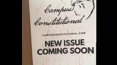 A defaced poster for the publication “Campus Constitutional” at Kenyon College.