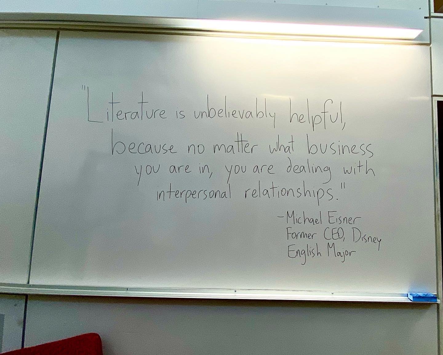 It all started March 9 when Dutt-Ballerstadt was in TJ Day Hall, the current location of Linfield’s English department, which is slated to house the business school. She saw two quotes written on a classroom whiteboard and took pictures: