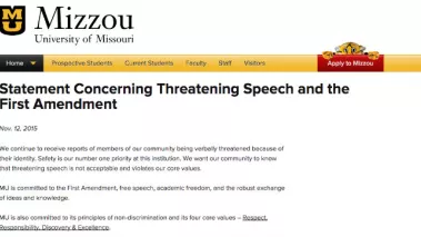 Mizzou’s administration leaves it unclear whether students are to report protected speech to the police, and it is threatening to investigate these reports. At FIRE, we’ve said on numerous occasions that investigations into protected speech chill campus discourse. Of course, the First Amendment does not protect unlawful true threats or harassment, and students should report them. But encouraging the reporting of protected speech goes too far.