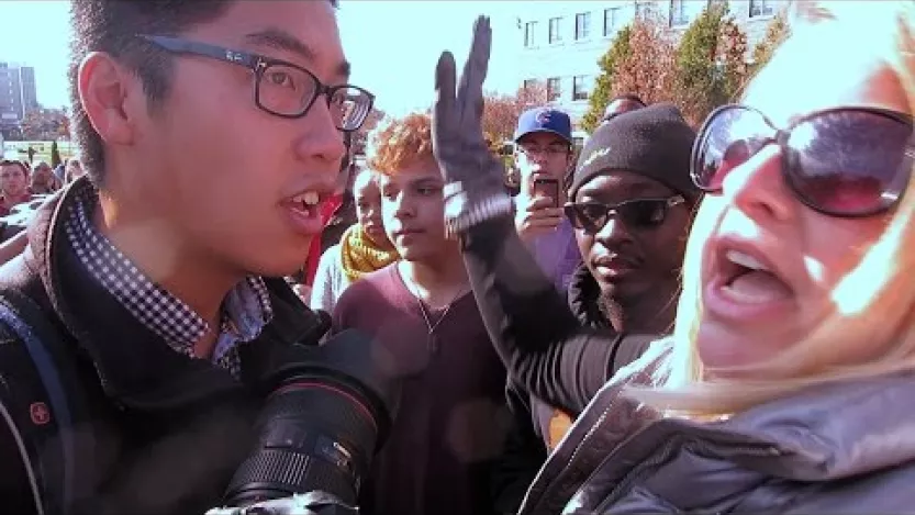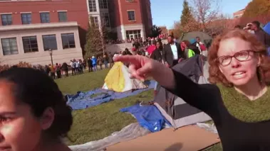 The most troubling incident in the recording, starting at the 7:12 mark, occurred when Schierbecker approached Assistant Professor of Communications Melissa Click inside the ring of protesters. He explained that he was a journalist and that he wished to speak with her. She immediately demanded he leave and appeared to grab his camera. (Speaking of things protesters do not have a right to do, that is one of them.)