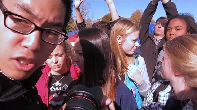 To be perfectly clear, student journalists do have the right to take photos and protesters do not have a right to push away journalists. Students engaged in public protest, the very purpose of which is visibility, cannot credibly argue that they have any reasonable expectation of privacy.
