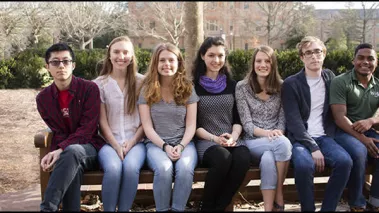 Current and recently-graduated members of William & Mary's Conduct and Honor Advisor Program (from left): Yan Lee, Lizzy Crotty, Bailey Hall, Anneliese Brei, Selene Swanson, Rob Sherman, and Rahul Truter.