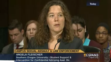 Today, we’ll analyze the testimony provided by the witnesses who spoke during the second panel of that hearing, including Angela Fleischer, Assistant Director of Student Support and Intervention for Confidential Advising at Southern Oregon University; Kathy Zoner, Chief of the Cornell University Police Department; and Peg Langhammer, Executive Director of Day One Sexual Assault and Trauma Center.