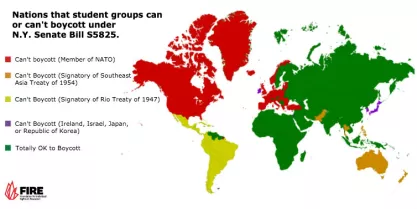 In a perennial effort to infringe on students’ First Amendment rights, a bill has been introduced in the New York State Senate that, if adopted, would bar funding to any student organization that “directly or indirectly promotes, encourages, or permits” either “hate speech” or boycotts concerning “commercial, social or political relations” with any nation “allied” with the United States.