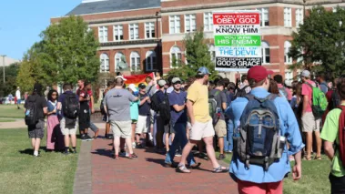 The Reflector, MSU’s student paper, reported yesterday that tensions between Consuming Fire Fellowship, a Mississippi-based Christian group, and student members of MSU’s LGBTQ+ Union grew over the course of Consuming Fire’s three-day demonstration, which began last Tuesday on MSU’s Drill Field.