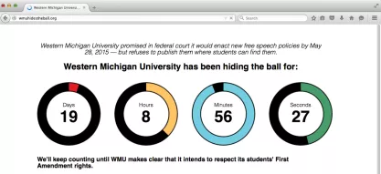 Over the past few days, FIRE published several blog posts, sent a barrage of tweets and posted a clock webpage (www.wmuhidestheball.org) pointing out that Western Michigan University had hidden the policies it had promised to enact as part of a settlement in a lawsuit filed under FIRE’s Stand Up For Speech Litigation Project.