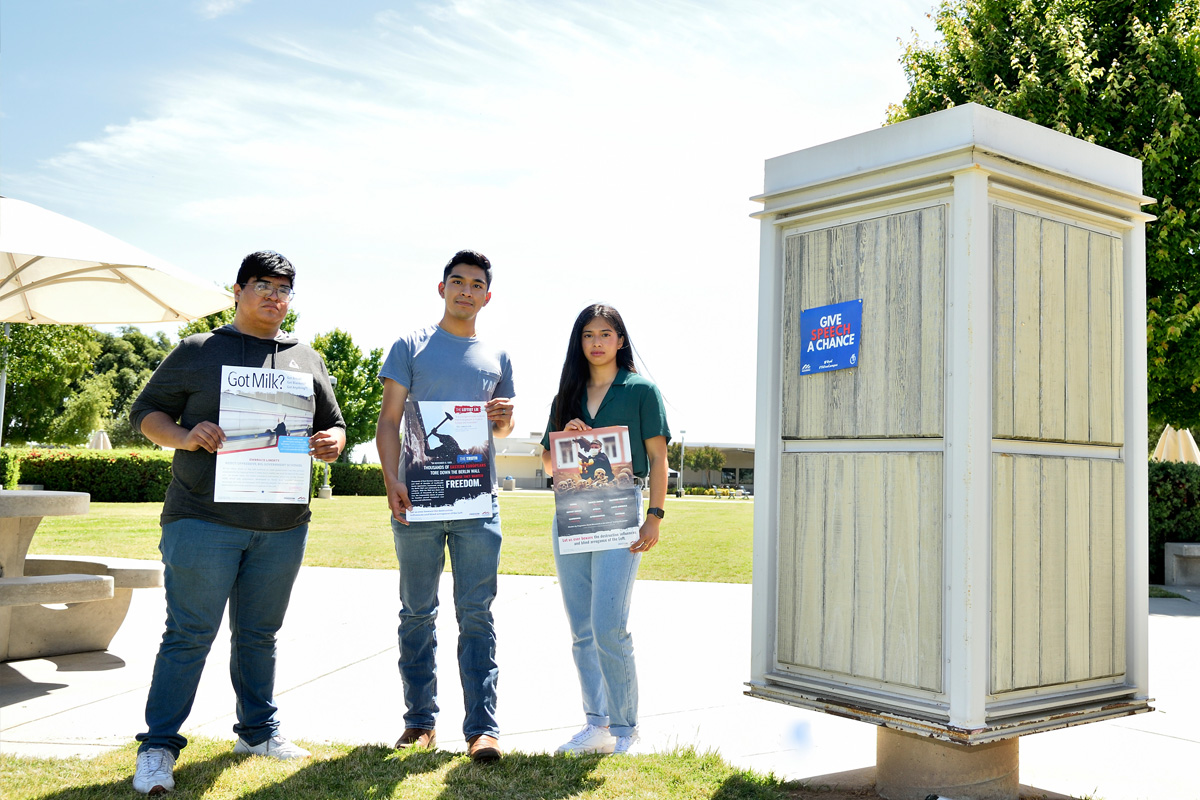 Photos of Clovis Community College plaintiffs Alejandro Flores, Daniel Flores and Juliette Colunga