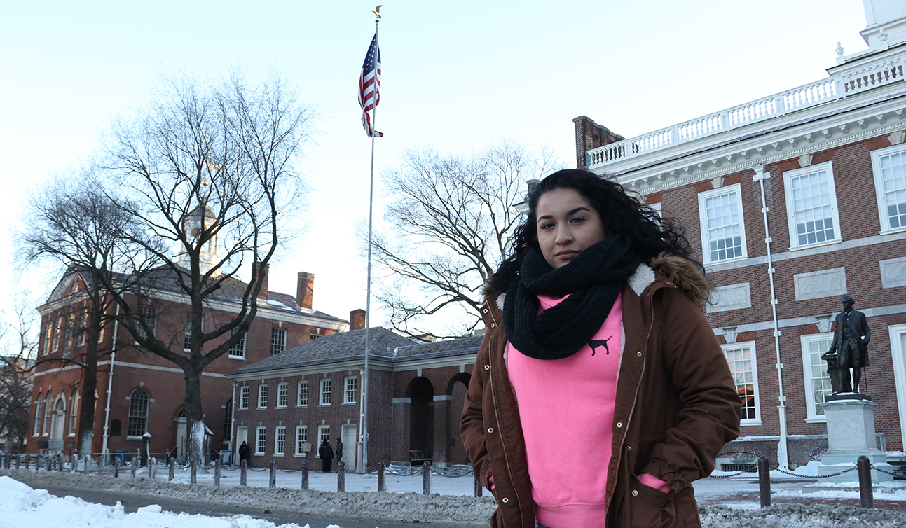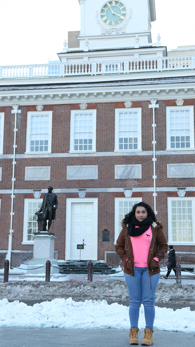 Media: To download any of these photos of the Joliet Junior College Stand Up For Speech plaintiff, click on the photo. Then, in the light box that opens, right-click and click “Save Image As…”. FIRE grants permission to publish any of these photos with the photo credit, “Ivette Salazar outside of Independence Hall in Philadelphia. Photo courtesy of FIRE/Chris Maltby.”