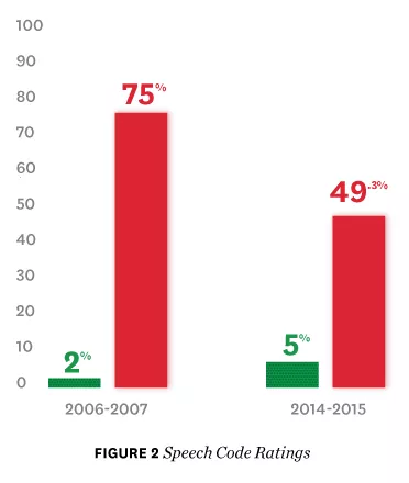 Since public colleges and universities are legally bound to protect their students’ First Amendment rights, any percentage above zero is unacceptable, so much work remains to be done. This ongoing positive trend, however, is encouraging. With continued efforts by free speech advocates on and off campus, and the continuing success of FIRE-driven litigation, we expect this percentage to continue to drop.